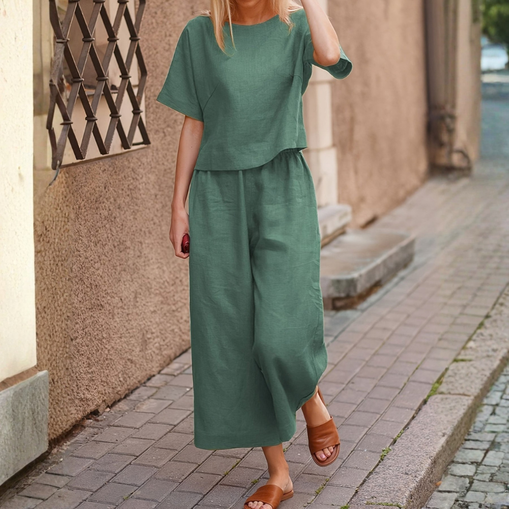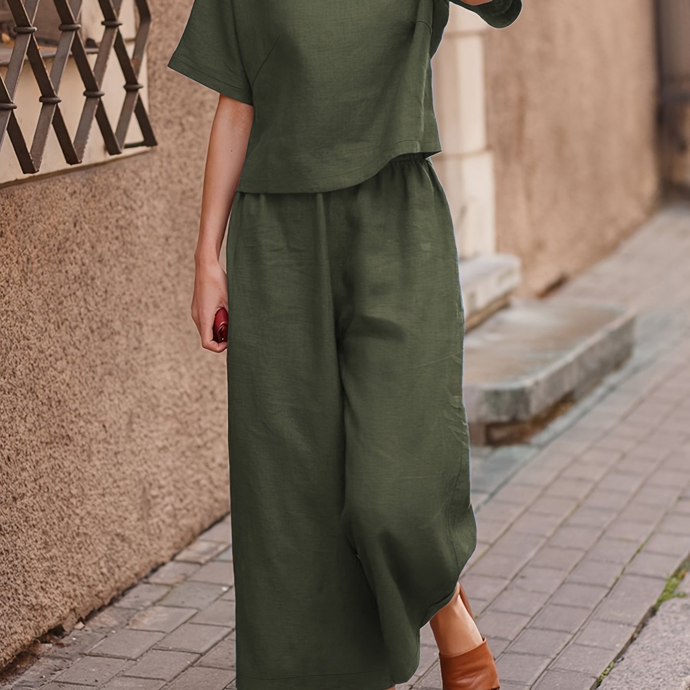 - Loose-fit design enhances comfort in women’s casual two-piece sets