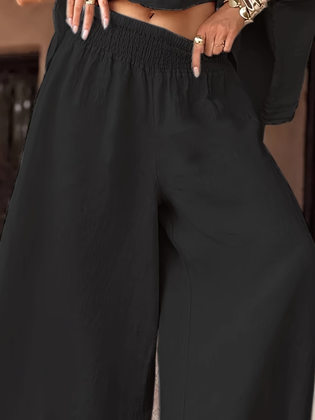 - Matching pants create an easy, coordinated everyday look