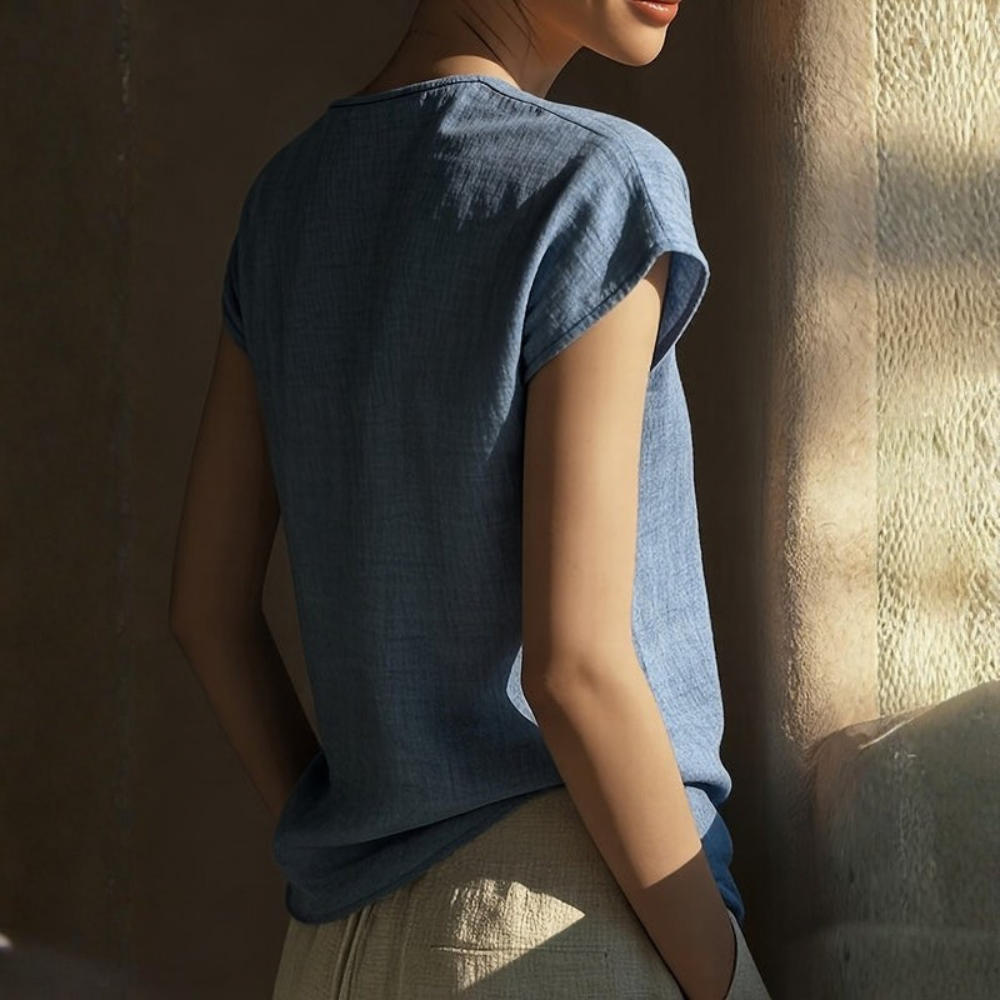 The Madison blouse is designed for women who love effortless bohemian style with a soft vintage feel. Featuring a delicate lace-accented V-neckline and short sleeves, this women’s bohemian summer blouse offers airy comfort and a relaxed silhouette, making it a versatile women’s casual vacation blouse for holidays and everyday wear.