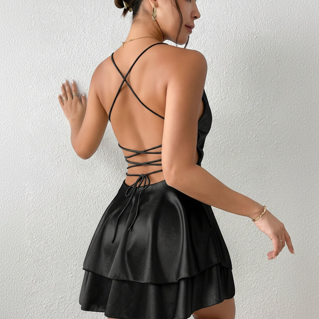 Satin Dress with Cross Back & Soft Layers